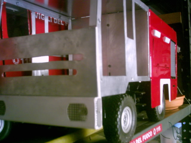 La prerogativa dei miei modelli e' appunto quella che tutto deve essere funzionante quindi dietro ad ogni luce c'e' un filo, dietro ad ogni movimento c'e' un dispositivo elettrico, dietro ogni suono una scheda elettronica che e' stata progettata assemblata (sirena) cosi' come quella per strobo lampeggianti  e dietro ancora c'e' un radiocomando, una ricevente che gestisce tutte queste accensioni  compreso quelle delle pompe , i movimenti dei monitore (cannoncini d'acqua) e un modello in scala 1/14 con un cambio a tre velocita', freni luci stop frecce luci hazzard e molto altro ancora . Infine tante ma tante ore di lavoro farcite da altrettanta pazienza , non che nel modellismo STATICO non ce ne voglia ma la grande differenza sta nel fatto che mentre nello statico tutto si limita ad un grande effetto estetico, nel dinamico ,oltre ad avere questo, tutto poi dovra' funzionare ... ecco , questa e' la differenza fra modellismo STATICO e DINAMICO .... spero che ora quando vedrete un modello girare per qualche fiera non darete per scontato ogni movimento che fara' ma penserete  anche a quanto lavoro c'e' dietro per realizzarlo.